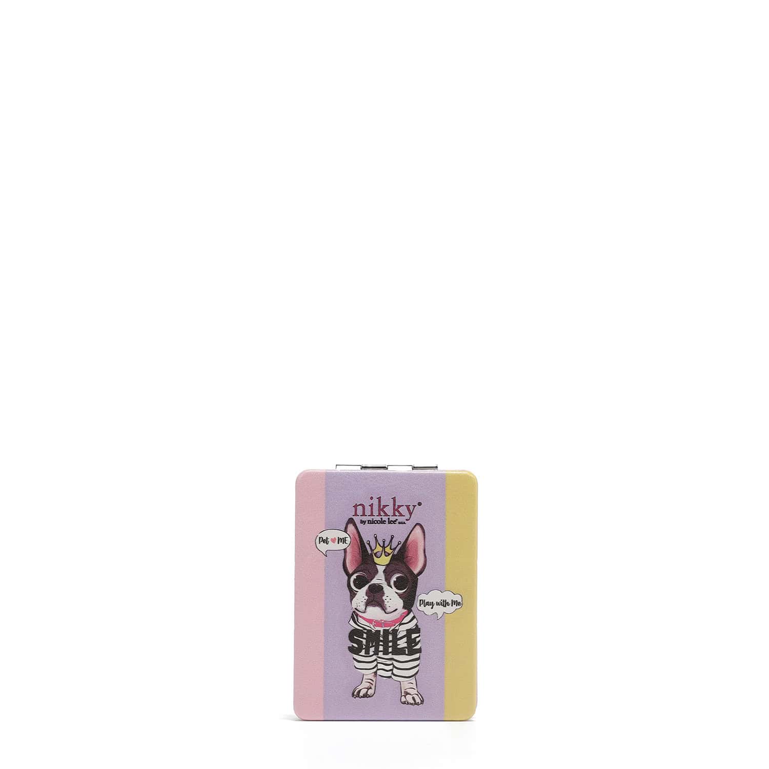 - Rectangular Mirror: Nikky print on eco – leather front and back. Stain-less steel. Magnetic Closure.