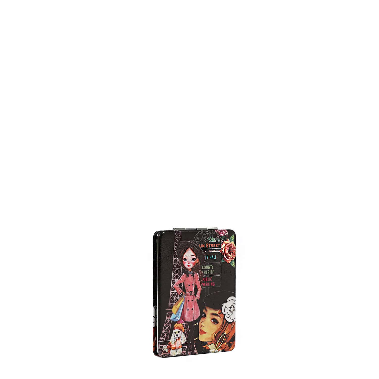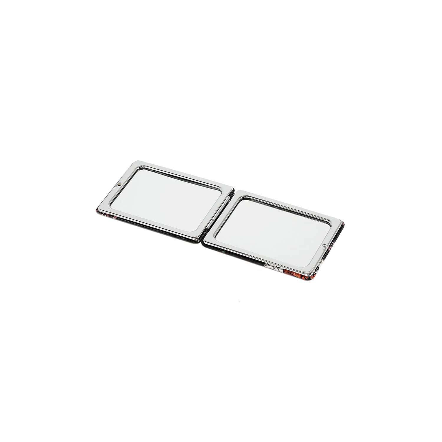 - Rectangular Mirror: Nikky print on eco – leather front and back. Stain-less steel. Magnetic Closure.