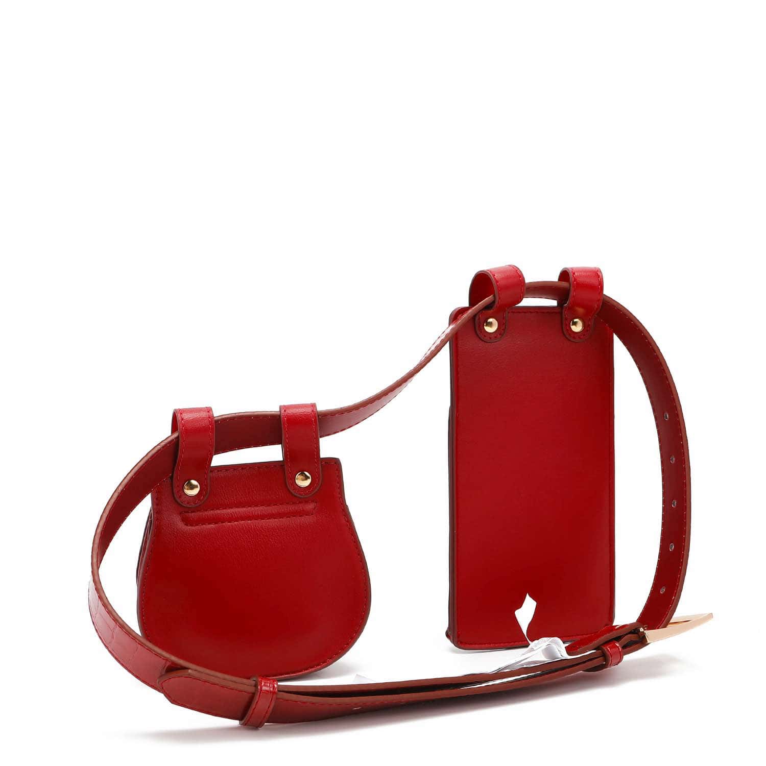 No need to take two steps forward and one step back – with our Laia 2-piece belt bag, you can have it all in one! Just slide your removable phone case and messenger pouch along the adjustable belt and choose your favorite combo. Now you can strut with both ‘bags’ in tow – no holds barred!